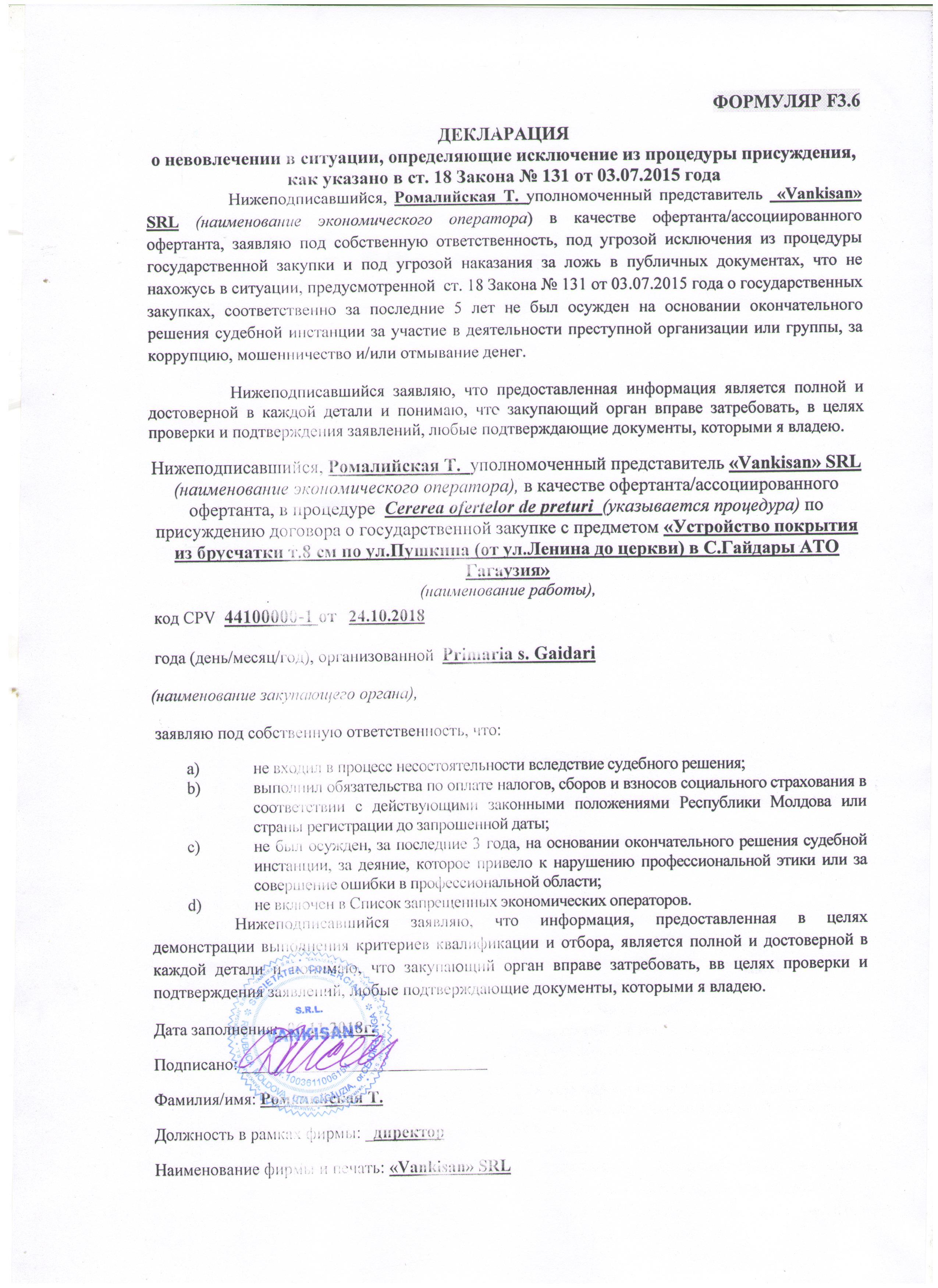 2) Отправить в течении 3 дней на почту AAP bap@tender.gov.md отсканированное решение рабочей группы.