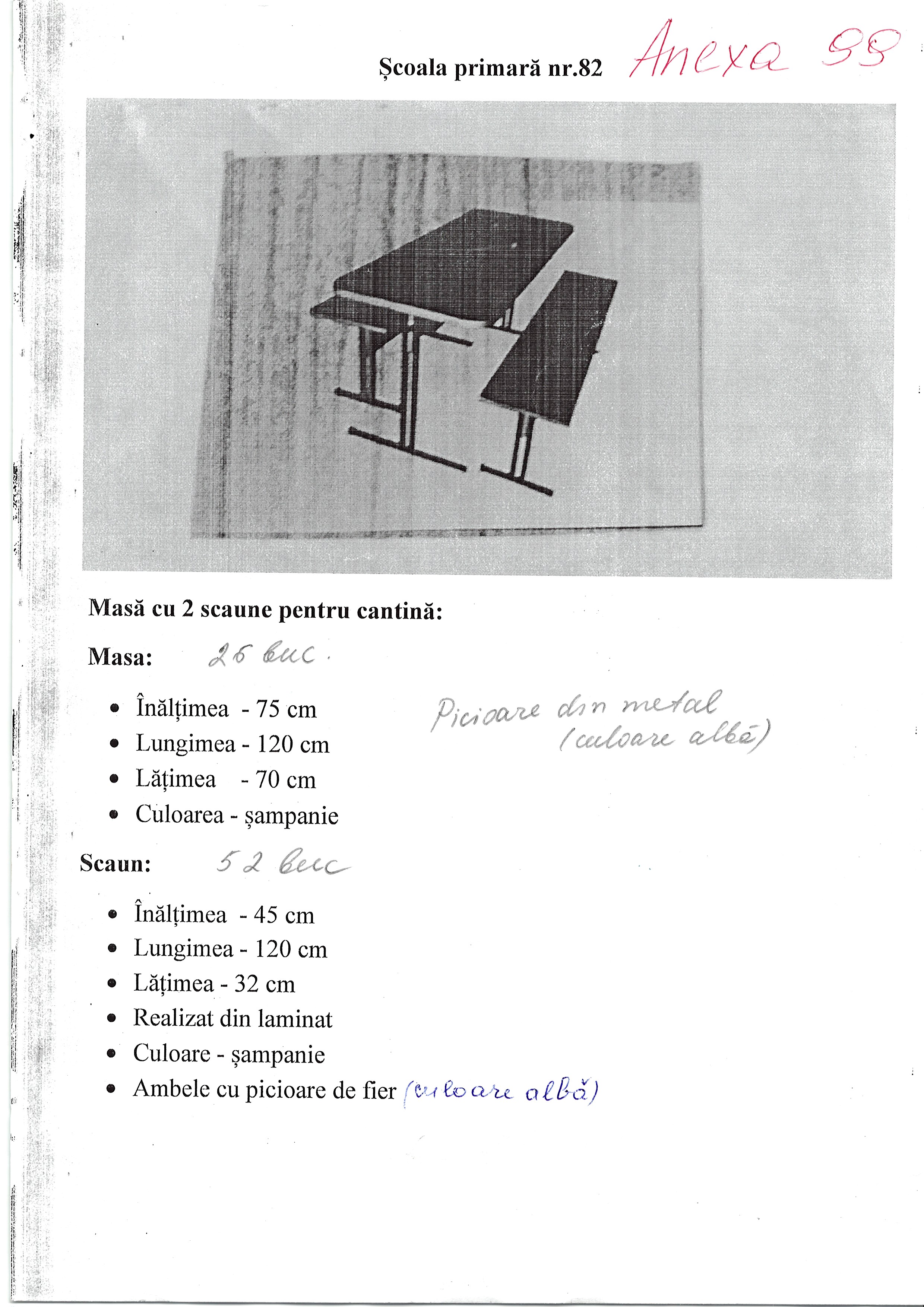 Set p/u cantina: masă cu 2 bănci
