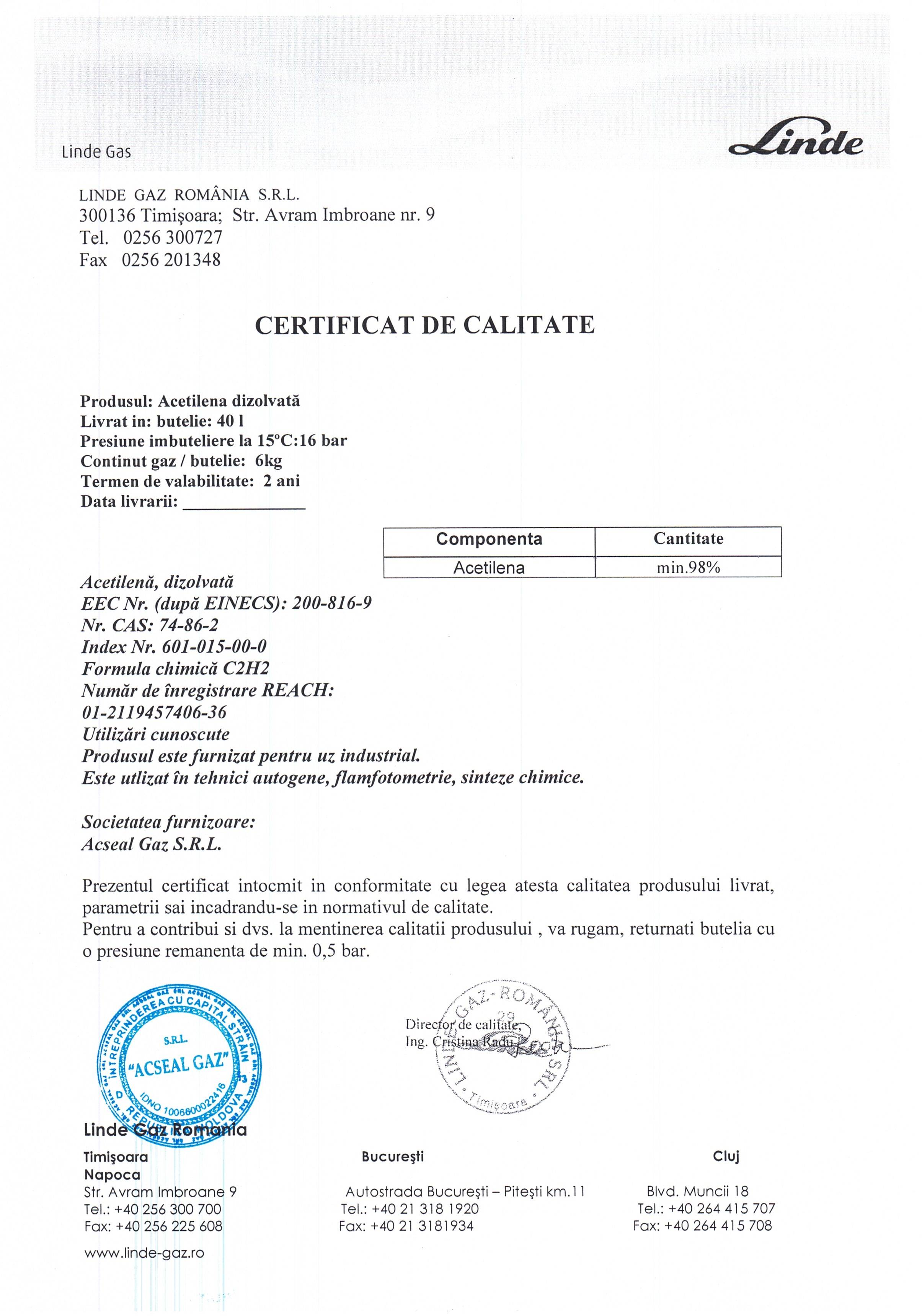 Acetilenă (butelie 40L/90Kg)