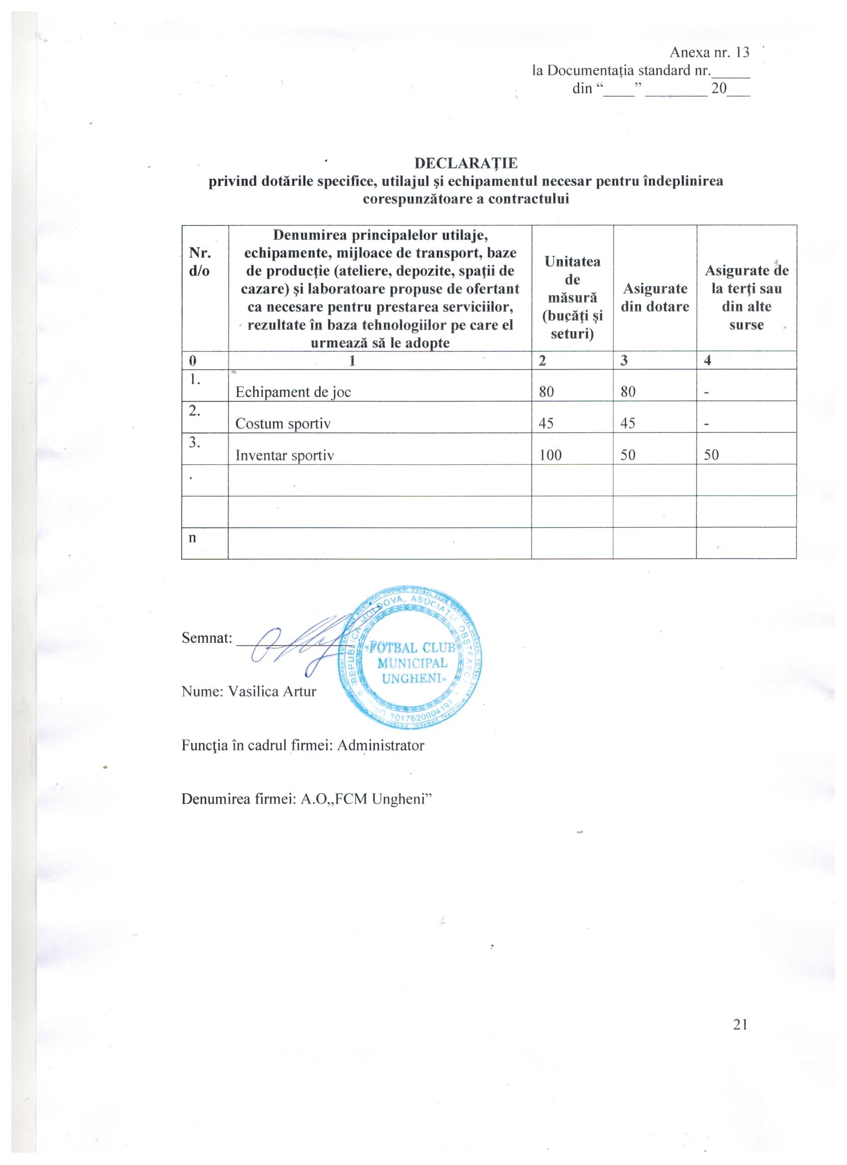 Servicii de dezvoltare a echipei de fotbal din mun. Ungheni REPETAT