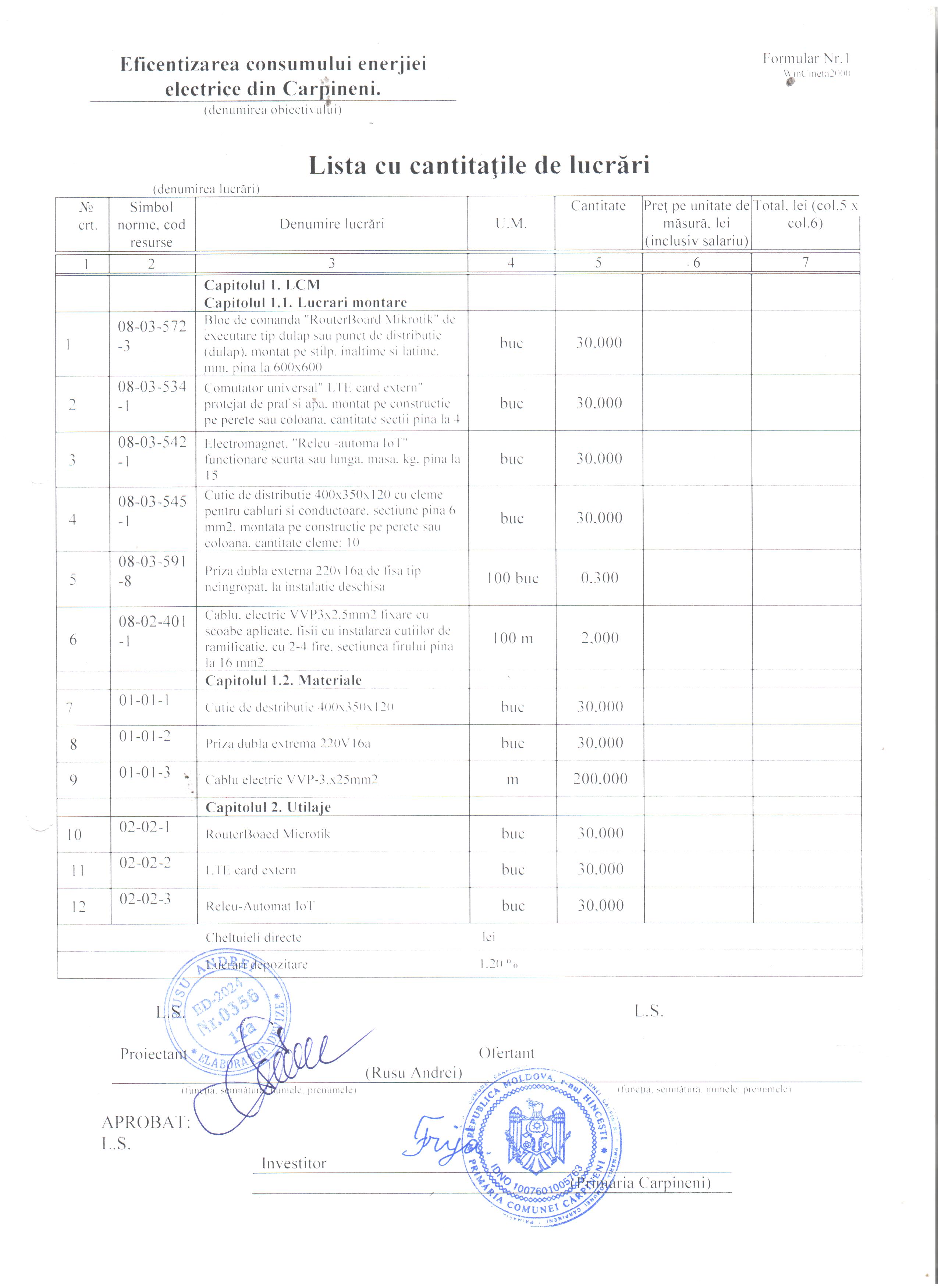 Lot nr. 1 - eficientizarea consumului energiei electrice din Carpineni
