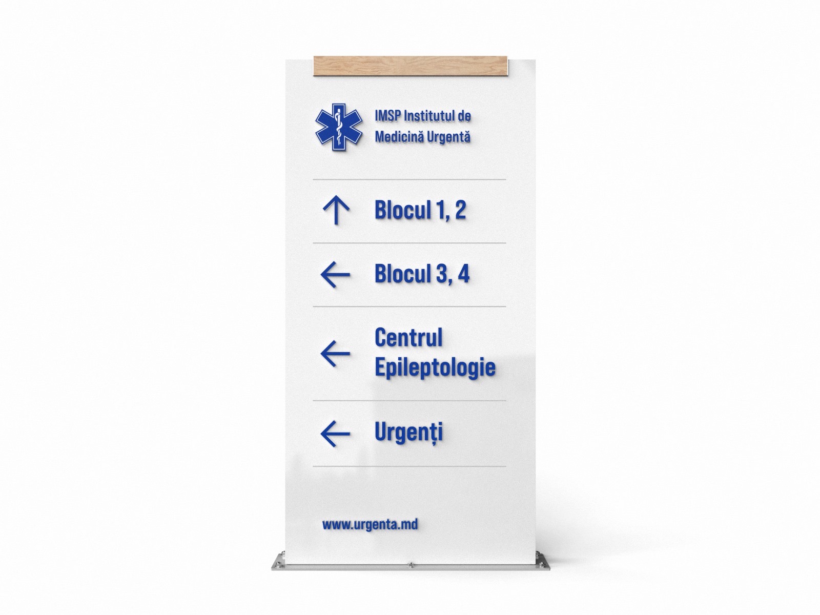 1.1. Panou informativ (amplasare secții (lift)). Dimensiuni: 500x700 mm sticlă organică (Plexiglass Cast) 5 mm (2 straturi). Placaj 10 mm, ABS, laser CO2, Freza 45^. Oracal color, plotter, elemente de fixare, inclusiv transportare și montare. Modelul conform pozelor atașate.