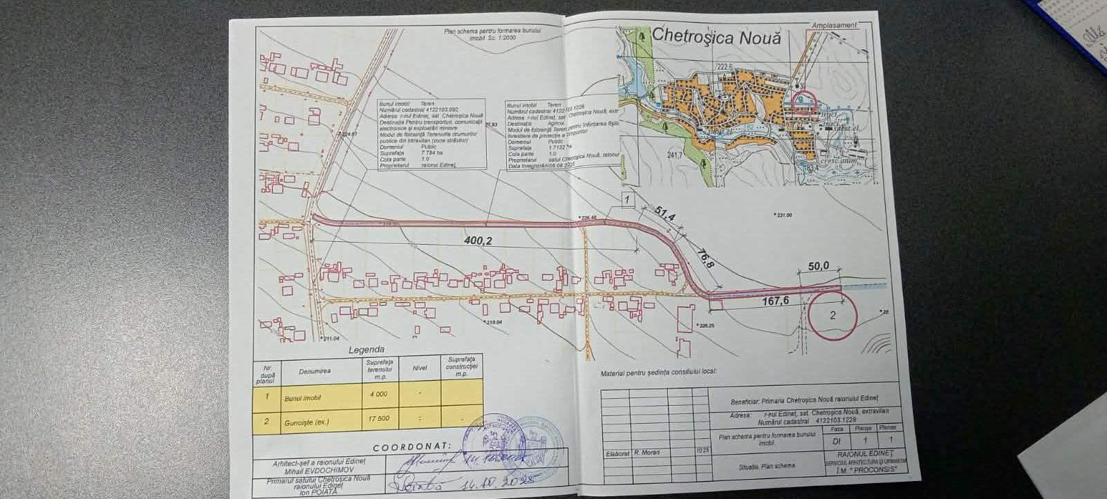 Reparația drumului de acces catre gunoiștea satului Chetroșica Nouă raionul Edineț (varianta albă) , în cadrul Proiectului de Cooperare Intercomunitară privind îmbunătățirea sistemului de gestionare a deșeurilor și modernizarea serviciului public de salubrizare în orasul Cupcini, satul Ștolniceni, satul Chetroșica Nouă din raionul Edineț.”)