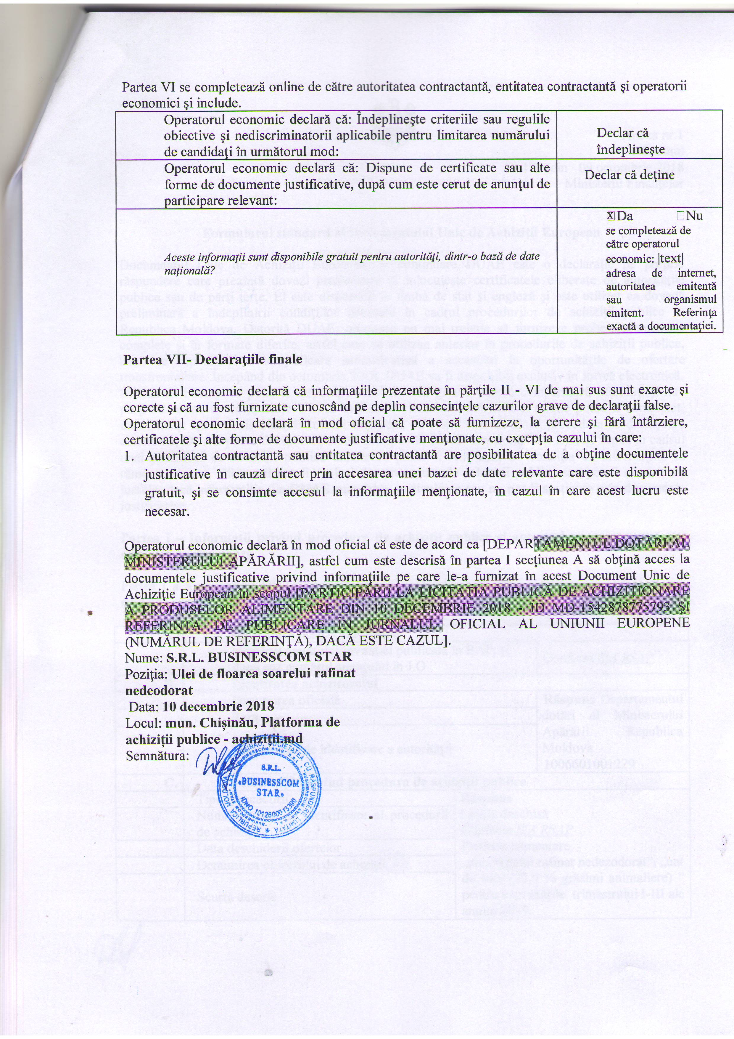 Aceasta procedura se va desfășura fară licitație electronică. Oferta Dvs. este finală și trebuie să conțină toată lista de documente cerută de documentația de atribuire.