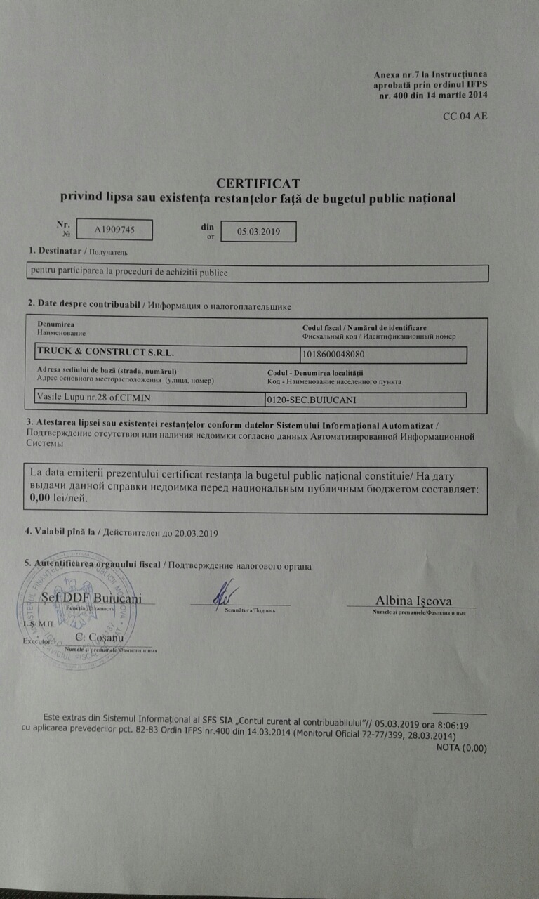 2) Trimiteți în termen de 3 zile la adresa de e-mail AAP bap@tender.gov.md forma scanată a deciziei grupului de lucru.