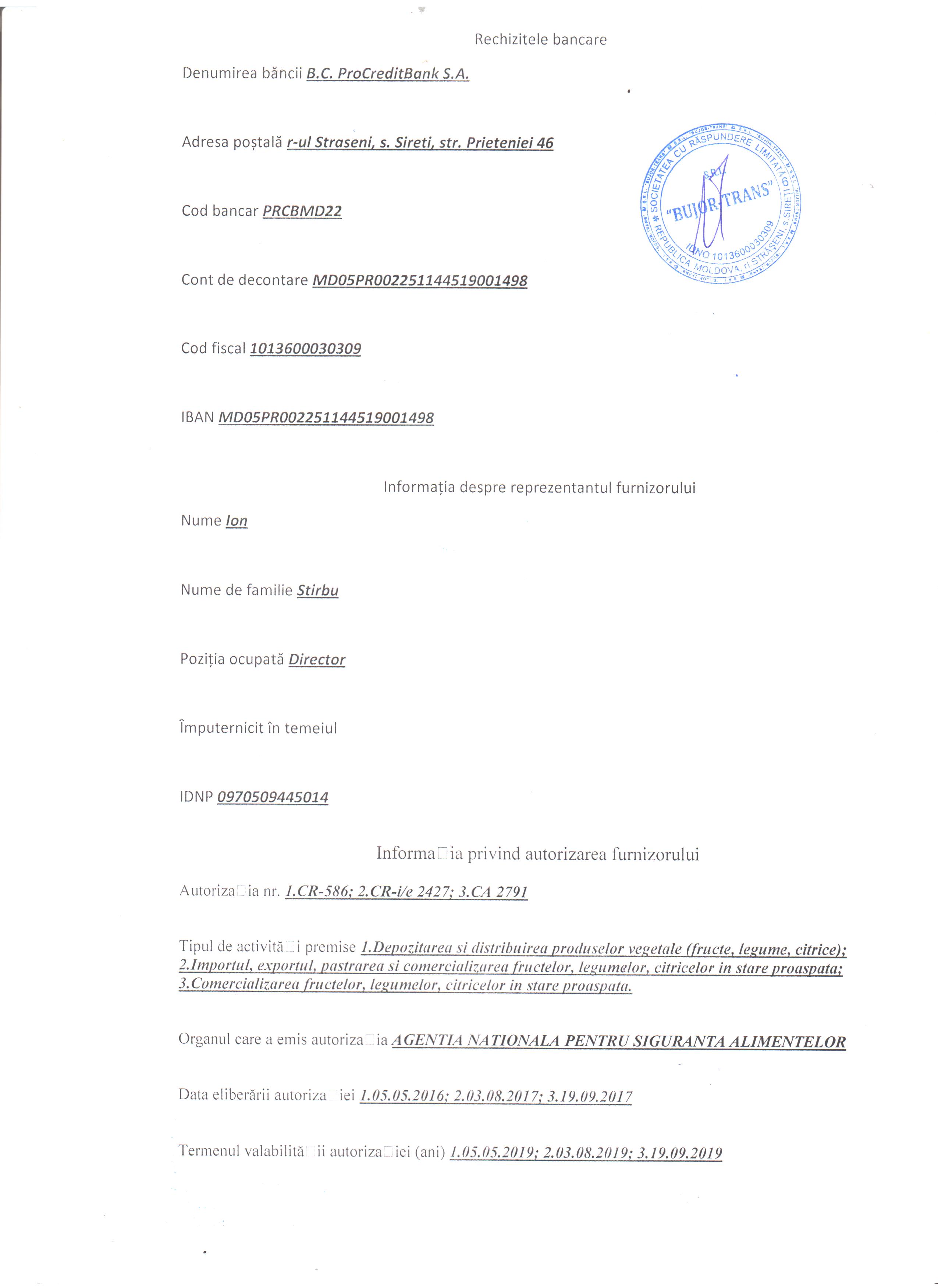 "BUJOR-TRANS" S.R.L.