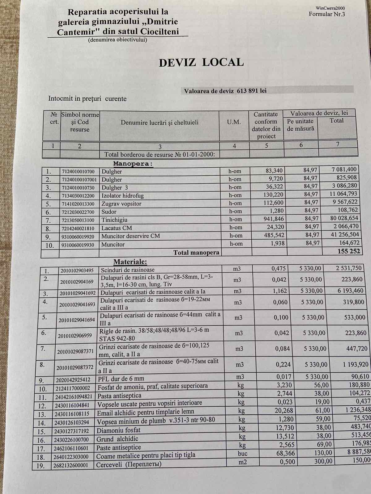 Lucrari de reparatie acoperisului la galeria gimnaziului ,,Dimitrie Cantemir,, s. Ciocilteni