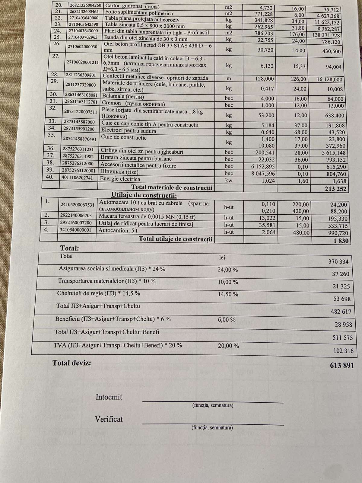 Valoarea estimată fără TVA 511 575,83 MDL