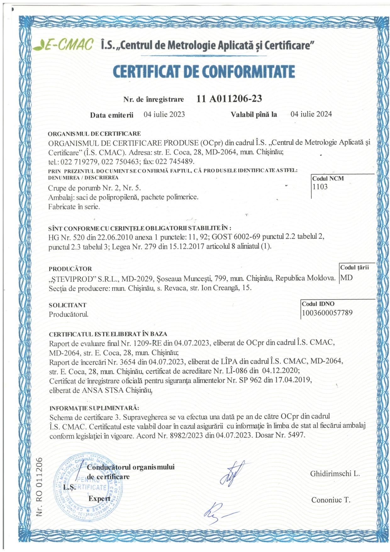 - la livrare se va prezenta pentru fiecare partidă: certificatul de calitate (conform anexei nr.1 din Legea 373/2023) emis de producător în cazul produselor de import, certificatul de calitate poate fi emis de importator în baza rapoartelor de încercări de laborator;