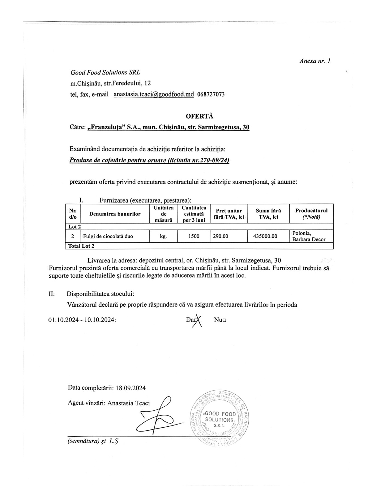 Oferta corespunde cerințelor