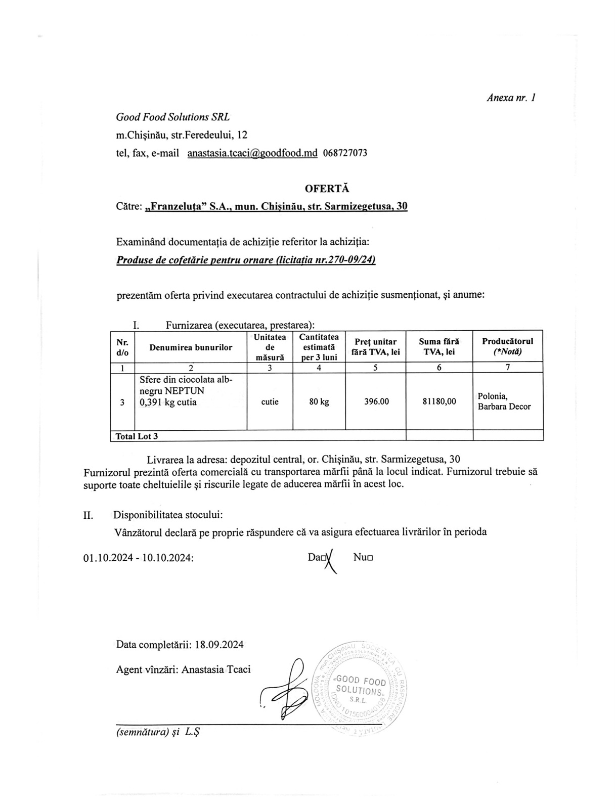 Oferta corespunde cerințelor