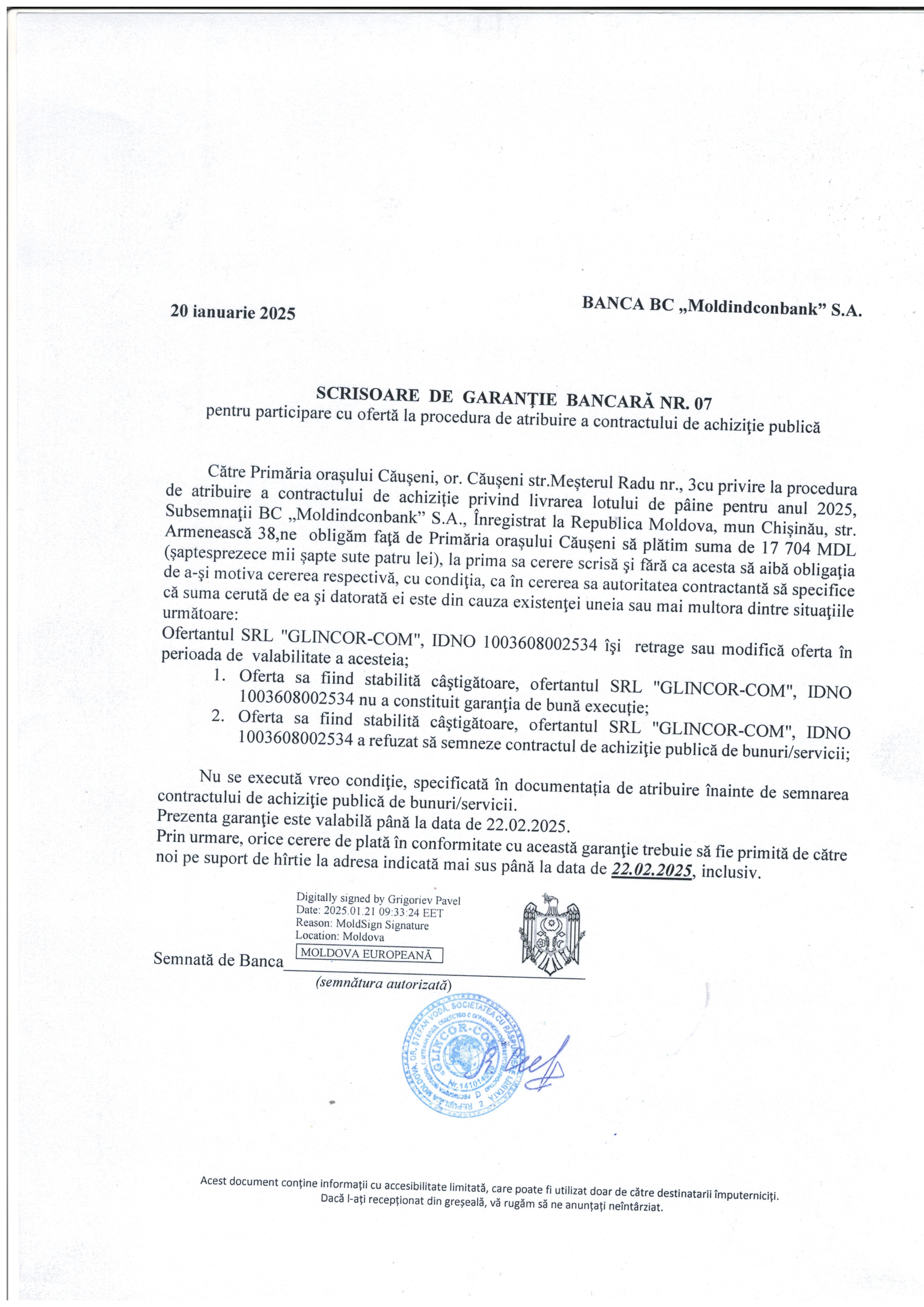 Buna ziua! Garantia pentru oferta poate fi transferata la contul primariei sau doar sa fie emisa de banca. Multumesc!