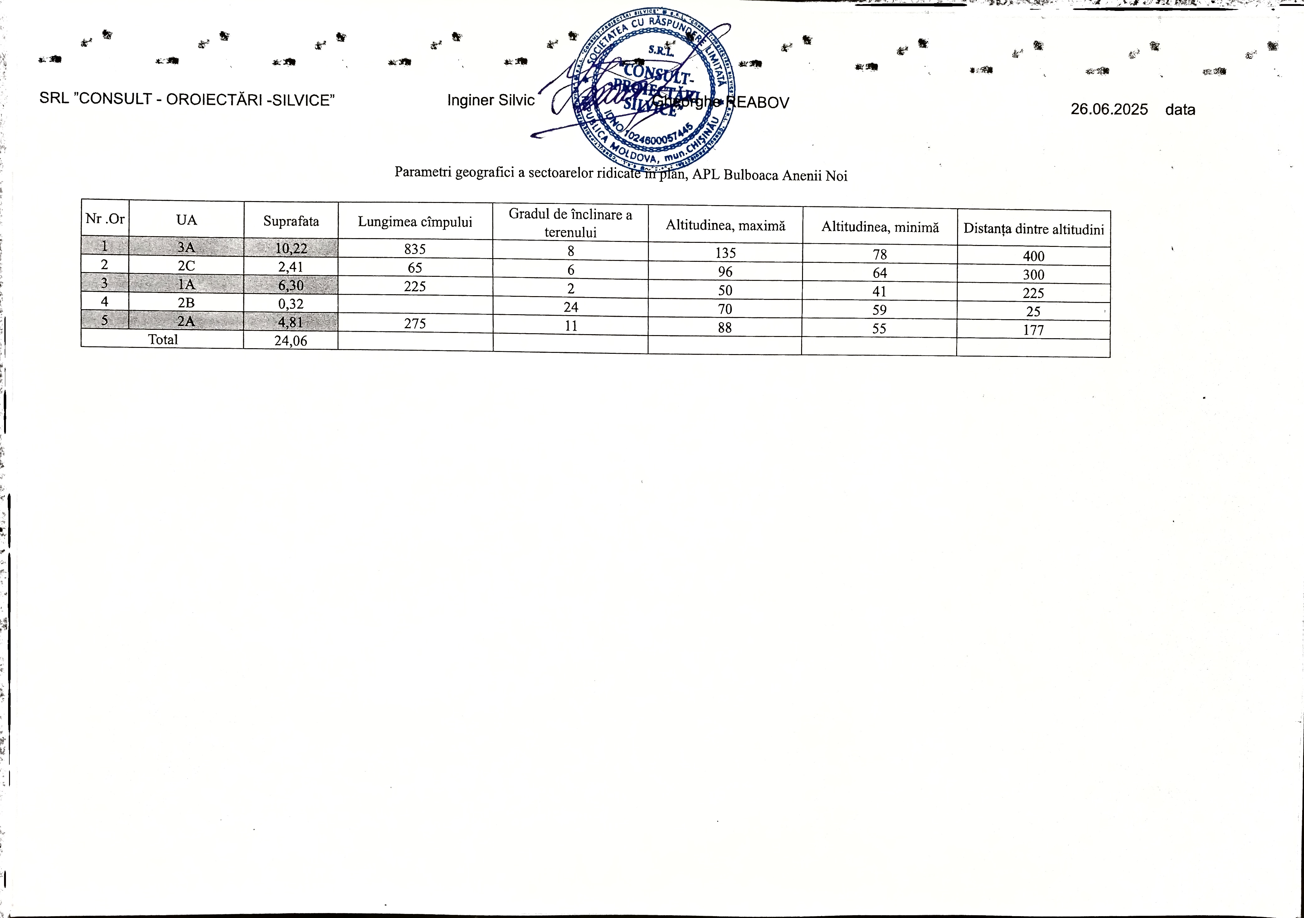 Parametrii geografici a sectoarelor de teren