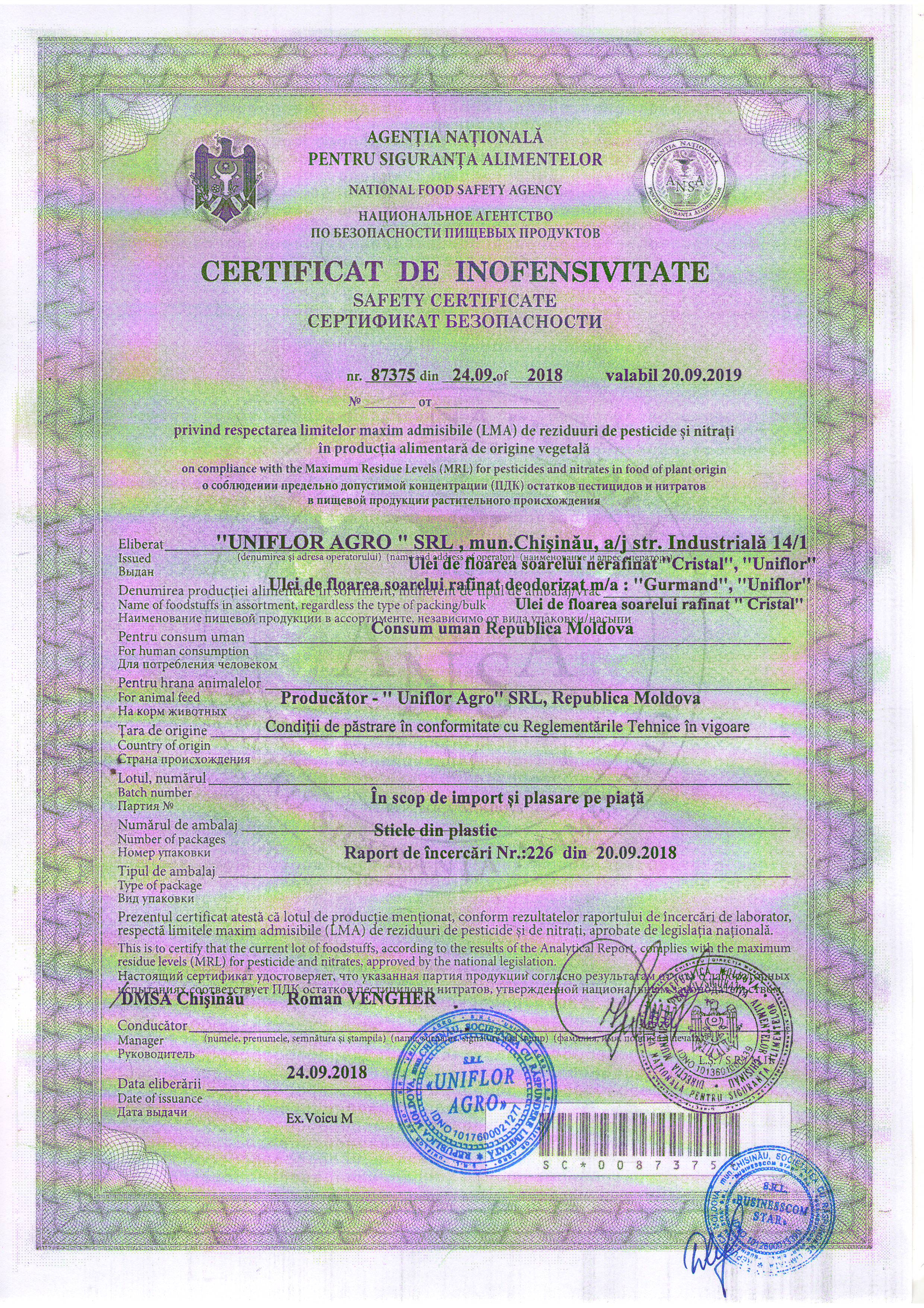 Ulei din floarea soarelui pentru anul 2019