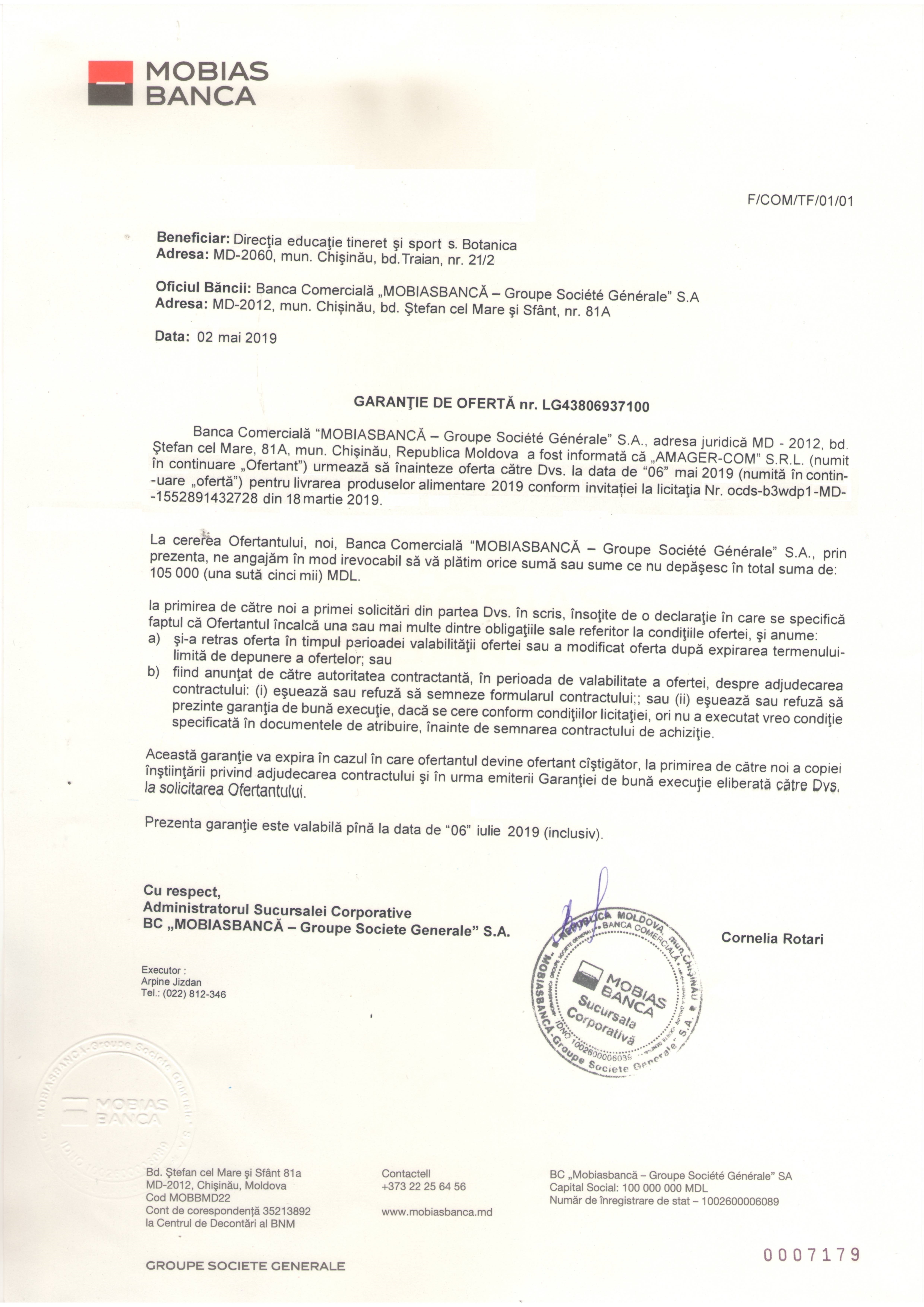 Grafic de livrare: 1/lună, până la data de 10 a lunii conform comenzilor, de la ora 8.00-17.00, la depozitul instituției