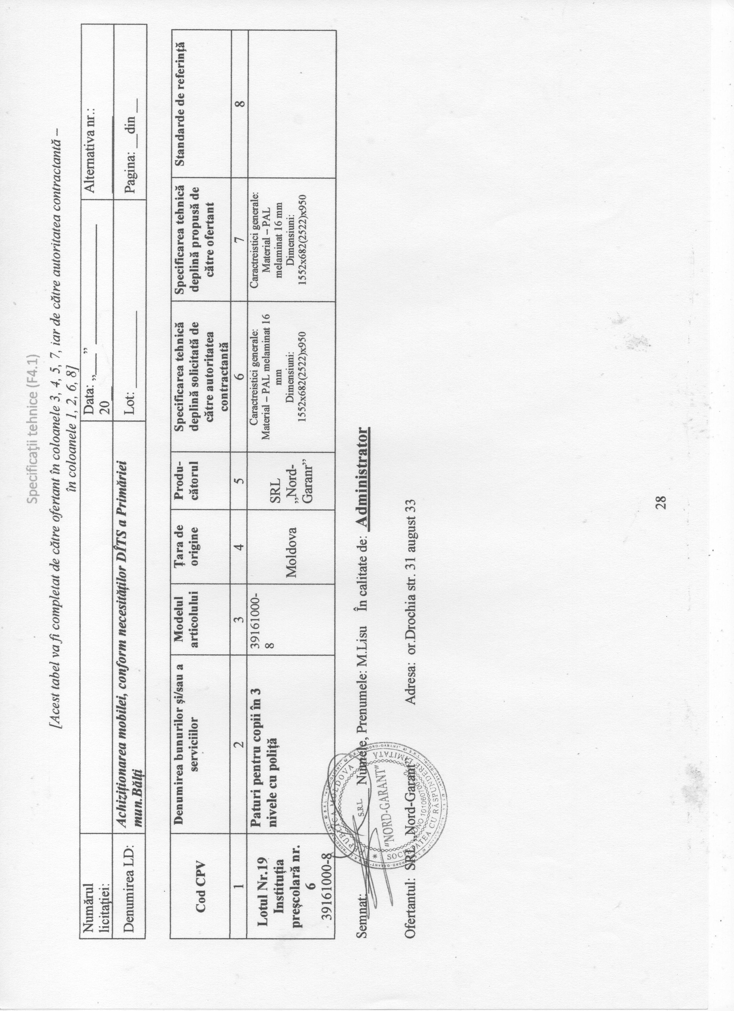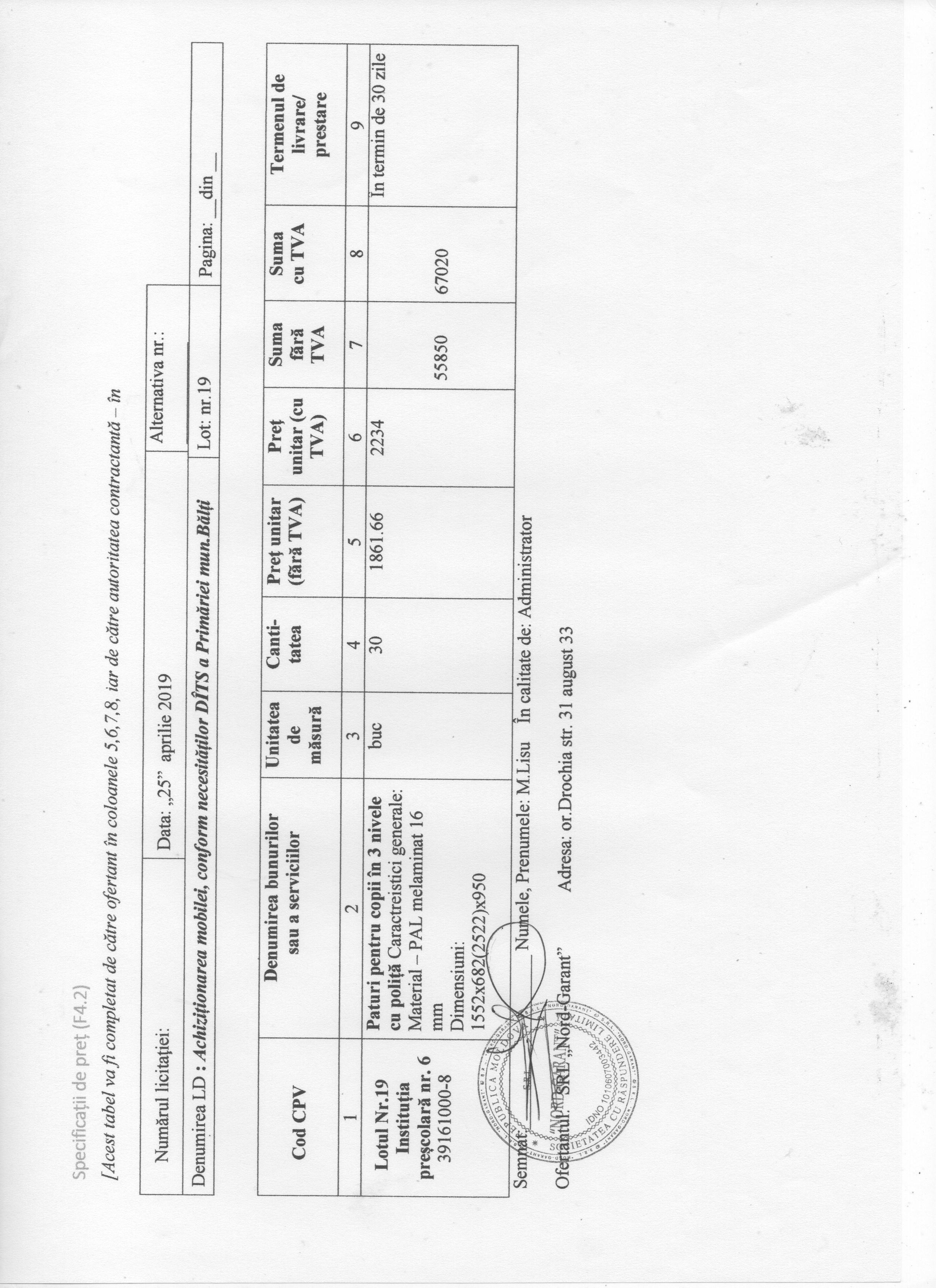 Lotul Nr.19Instituția preșcolară nr. 6Pat