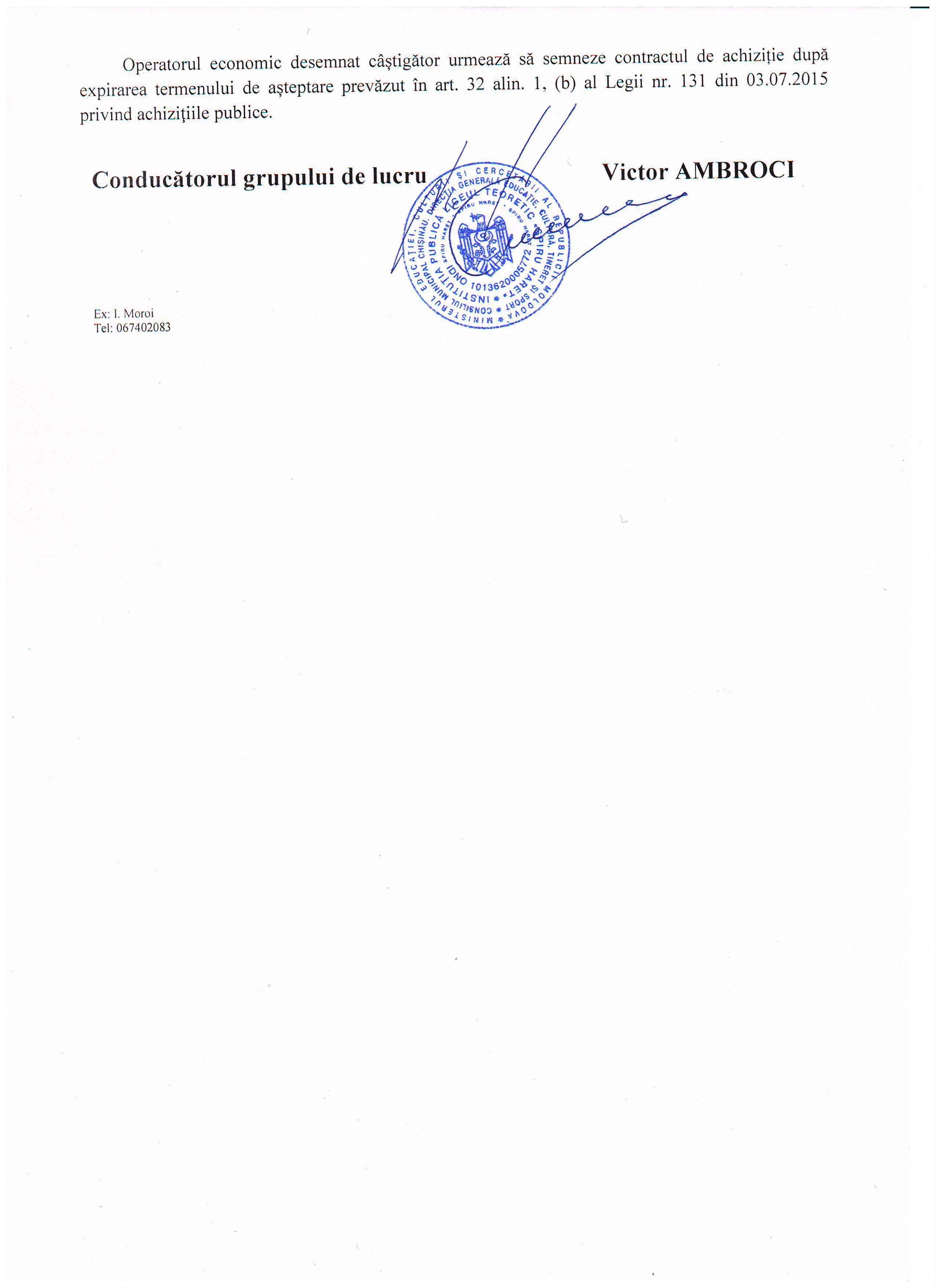 2) Отправить в течении 3 дней на почту AAP bap@tender.gov.md отсканированное решение рабочей группы.
