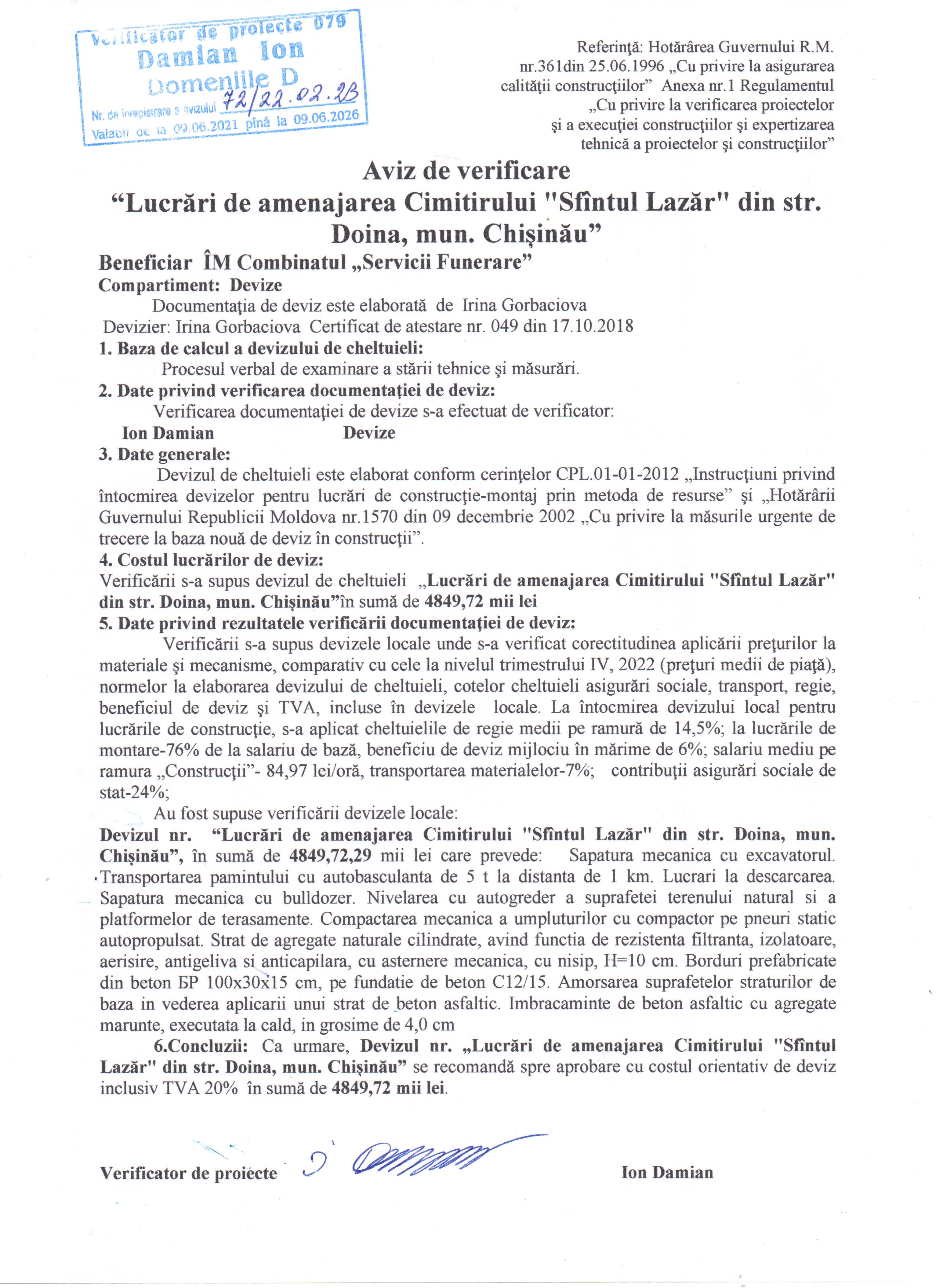 Aviz de verificare _Lucr.de amenajare Doina