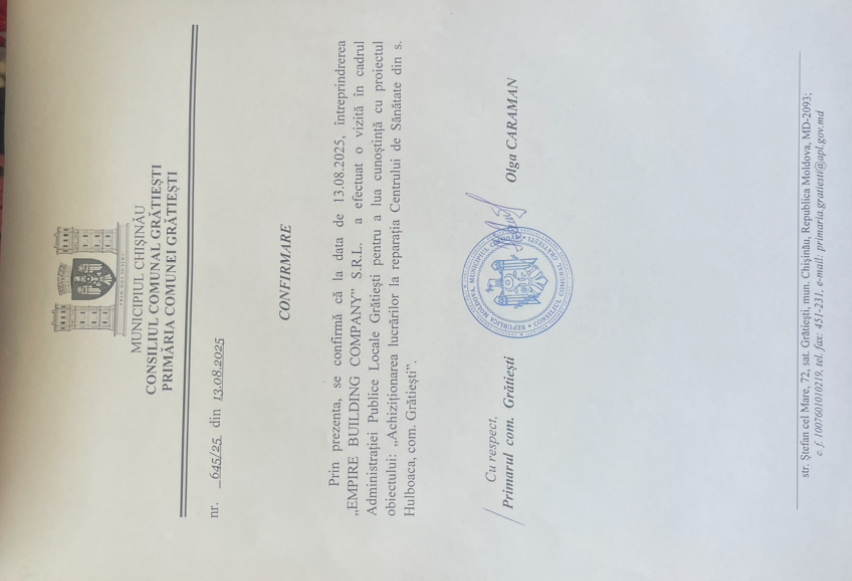 Achiziționarea lucrărilor la ”Reparația Centrului de Sănătate din s. Hulboaca, com.Grătiești”