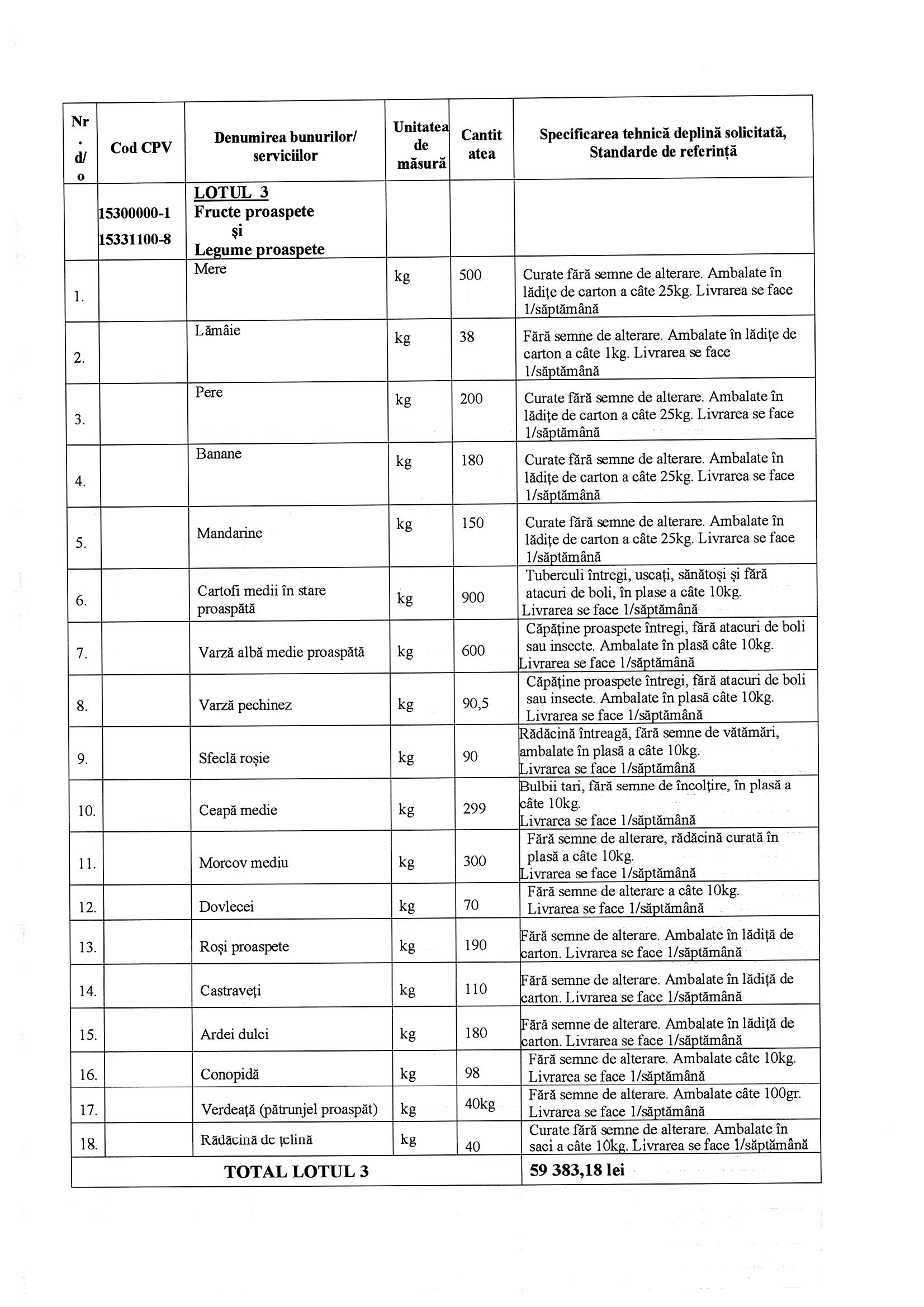 LOTUL 3- Fructe proaspete și Legume proaspete